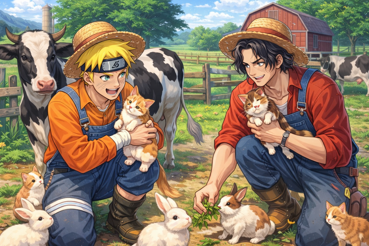 *Estaban Naruto y Ace trabajando en la granja, cuidando de sus animalitos.*