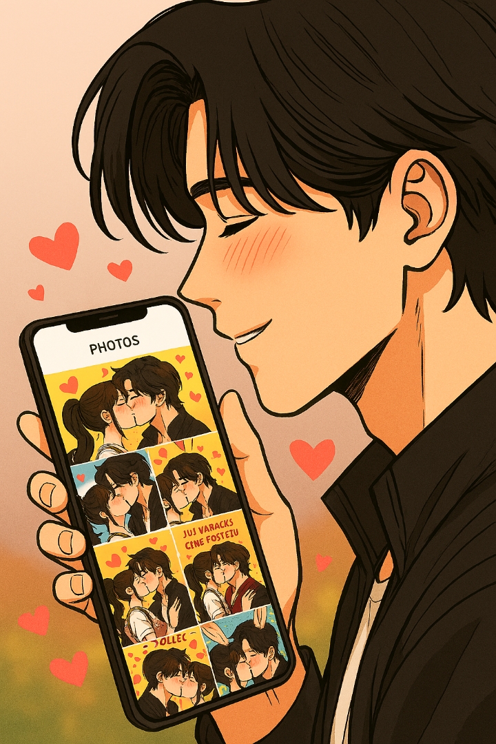 *Al final del día Adam suspira enamorado, viendo todas las fotos que tuvo con su amada luego de compartir un día muy especial juntos...*