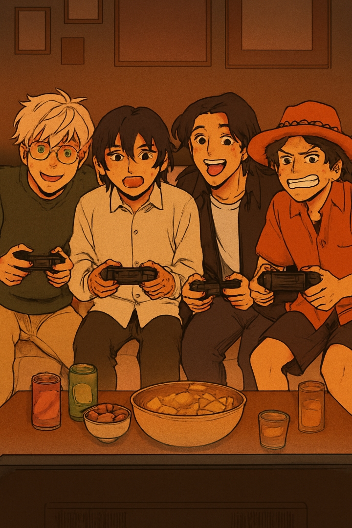 *Estaba toda la banda de Kurogane reunida jugando una partida de Mario Kart, y todos se reÃan, divertidos.*